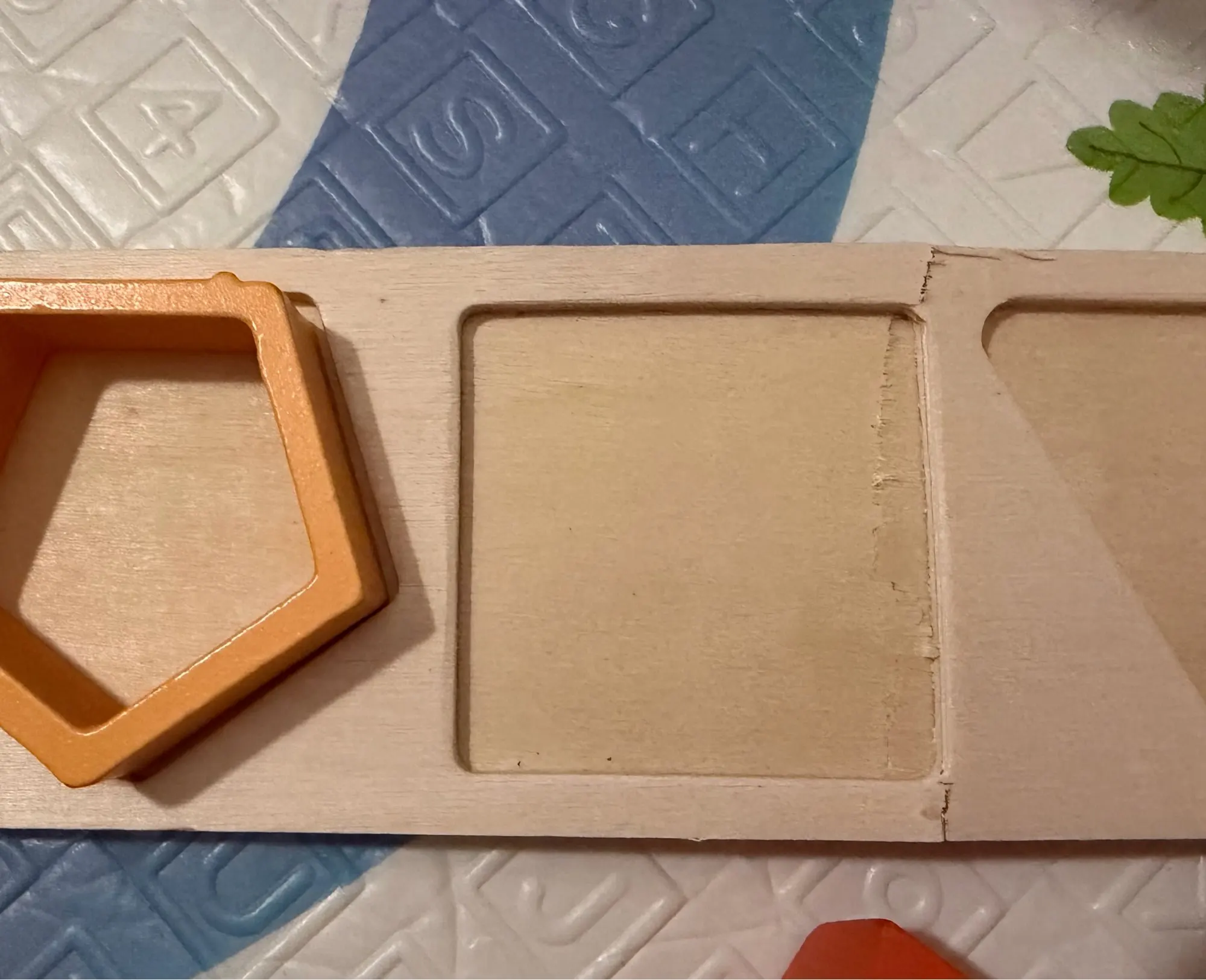 The pink piece that is supposed to be circular is not, and that is indeed a factory error.